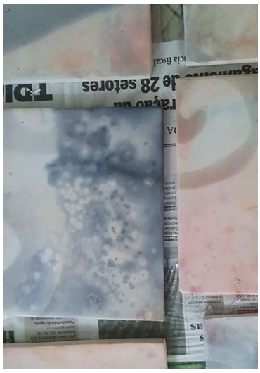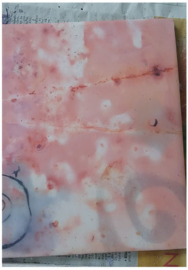 Cerâmica de baixa temperatura, com aplicação de terra sigillata, queima primitiva em forno a lenha. Três painéis com aprox. 75 x 60cm cada.
