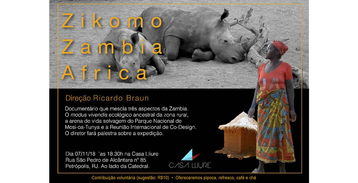 O documentário mescla três aspectos da Zambia: o 'modus vivendi' ecológico ancestral da zona rural, a arena de vida selvagem do Parque Nacional de Mosi-oa-Tunya e a Reunião Internacional de Co-Design. Após a exibição o autor fez palestra sobre a expedição.