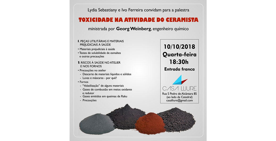 A convite da Casa Lliure, o engenheiro químico Georg Weinberg gentilmente preparou e apresentou uma série de slides sobre a toxicidade na atividade do ceramista, uma questão que merece a devida atenção de quem trabalha com a argila.